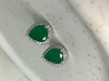 Brinco com esmeralda central em formato de gota com micro cravação em zircônia envolta. Banho de ouro 18k e ródio branco.